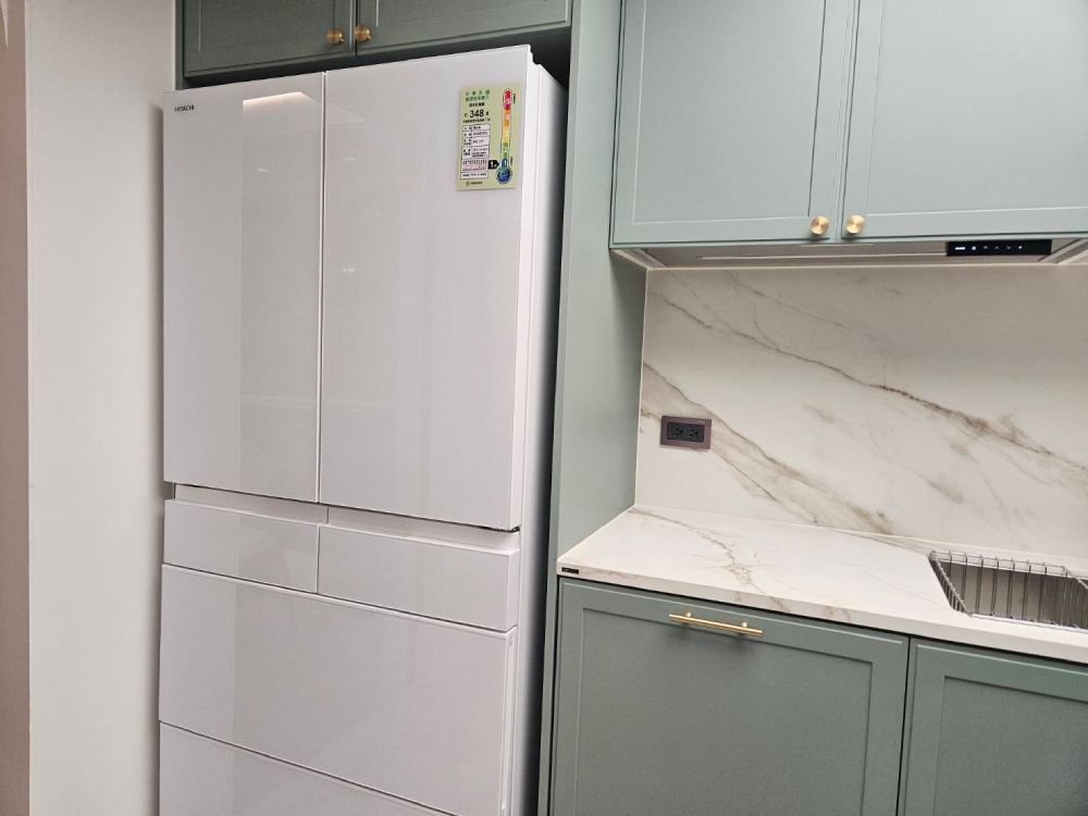 而且因為這台冰箱不會很厚,很深。所以旁邊包覆它的櫥櫃櫃體也不會因為這樣子變得內部東西難以拿取,能讓旁邊的櫥櫃同樣維持一個合理的深度。如果是放在廚房走道上,廚房走道也不會變得擁擠。