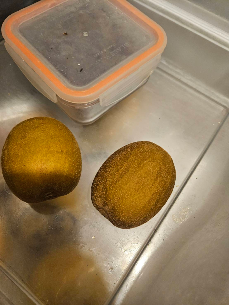 我抱持著一點點實驗的心情,奇異果沒有套袋子丟進去了超過一個禮拜。奇異果的表皮完全沒有因為是直接裸放在冰箱裡面而皺皺乾乾的感覺。(而且這邊居然是整個盤Costco奇異果的份量!看不出來吧?超能裝!)通常直接這樣裸放蔬菜應該會皺皮才對。